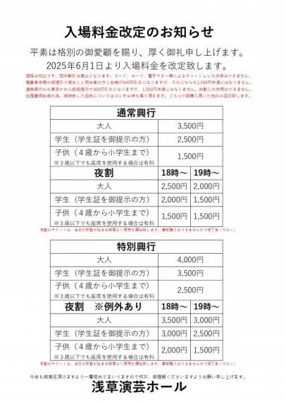 入場料金改定のお知らせ